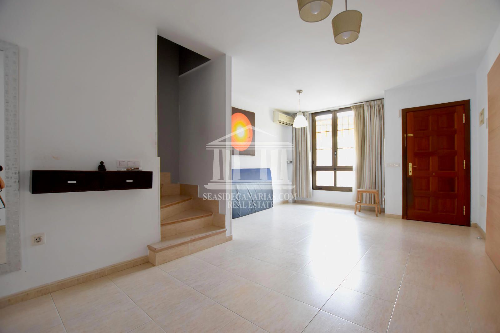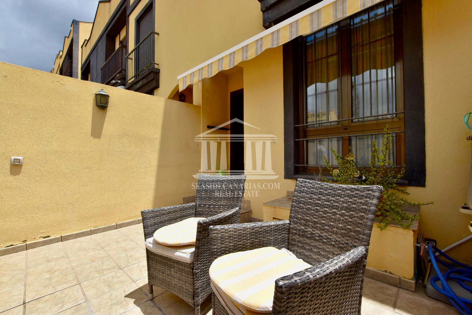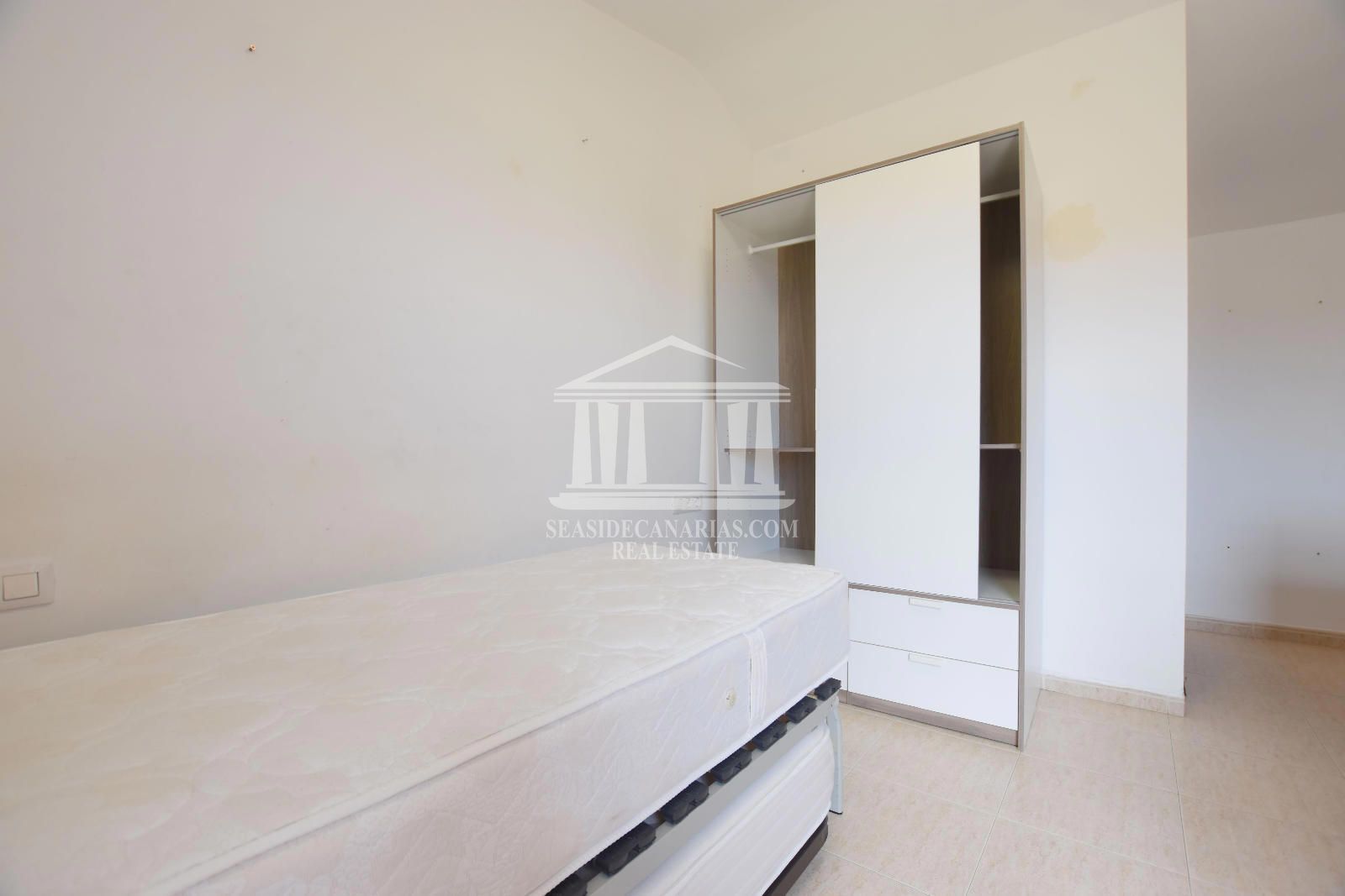 Das Stadthaus befindet sich in einer Wohnanlage mit einem Gemeinschaftspool und ist auf vier Etagen verteilt. Im Erdgeschoss finden Sie ein gemütliches Wohn-Esszimmer, eine separate Küche mit Zugang zum hinteren Patio und eine Toilette. Im ersten Stock befinden sich das Hauptschlafzimmer mit Einbauschränken und einem französischen Balkon, ein zweites Schlafzimmer und ein komplettes Badezimmer. Im ersten Stock befindet sich ein drittes Schlafzimmer, das über eine private Terrasse von ca. 10 m² verfügt, die sich perfekt für entspannende Momente eignet. Im Untergeschoss befindet sich eine geschlossene Garage von 44 m², ideal für zwei Fahrzeuge. Darüber hinaus verfügt die Immobilie über eine vordere Terrasse von über 15 m² und eine hintere Terrasse von 10 m², die viel Platz im Freien bieten, um das kanarische Klima zu genießen. Mit einer Süd-Nord-Ausrichtung, die den ganzen Tag über eine hervorragende Helligkeit garantiert, ist dieses Stadthaus eine ideale Option für diejenigen, die Komfort und Lebensqualität in einer wachsenden Umgebung suchen.