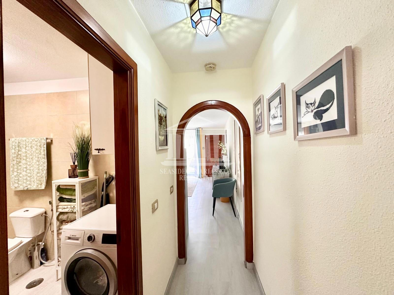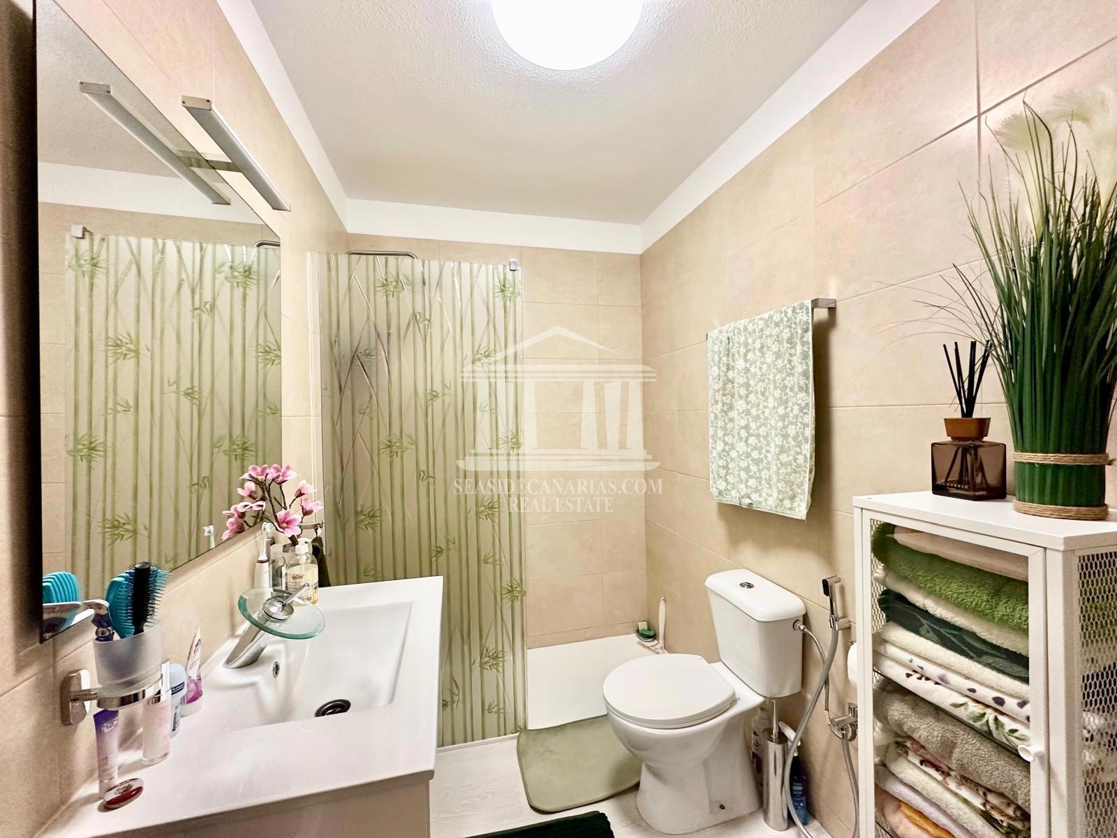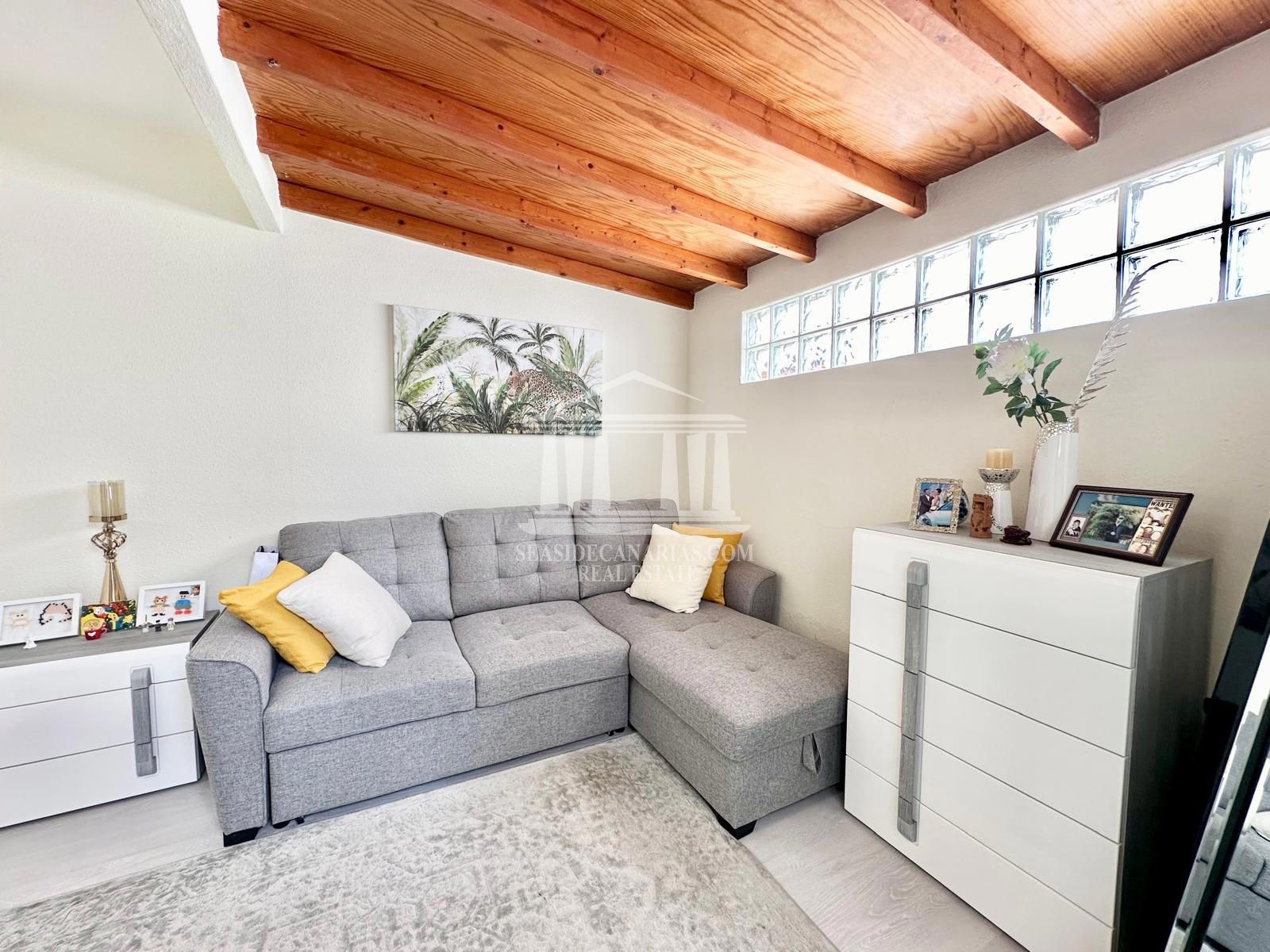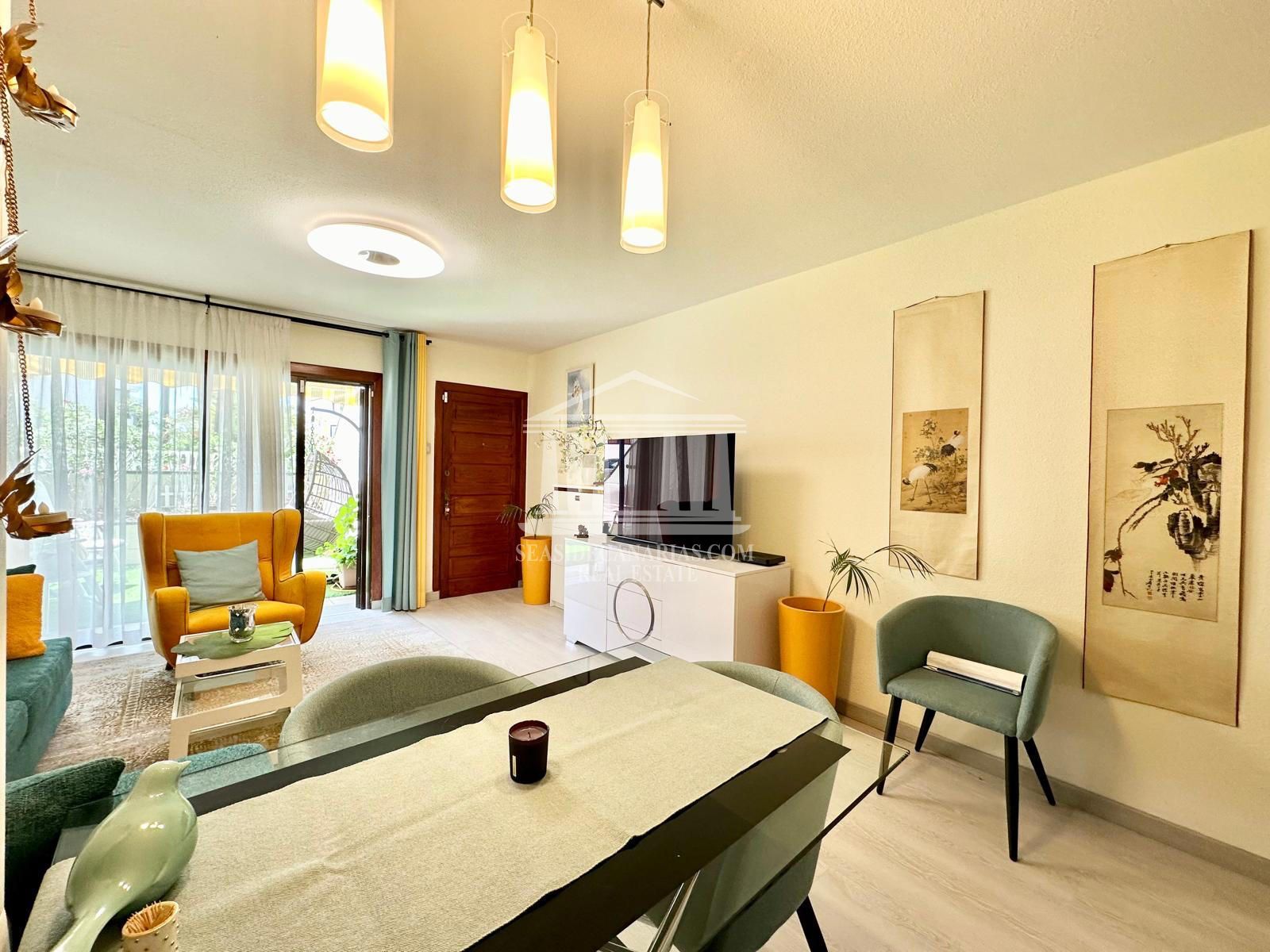 La vivienda, completamente renovada en 2023, cuenta con una superficie construida de 82 m² que incluye dos terrazas de 34 m² en total, una de ellas cerrada, ideales para disfrutar del clima soleado del sur de Tenerife durante todo el año. Su interior se distribuye en un luminoso salón-comedor con cocina americana, un dormitorio de matrimonio con armario empotrado y un baño moderno con ducha.