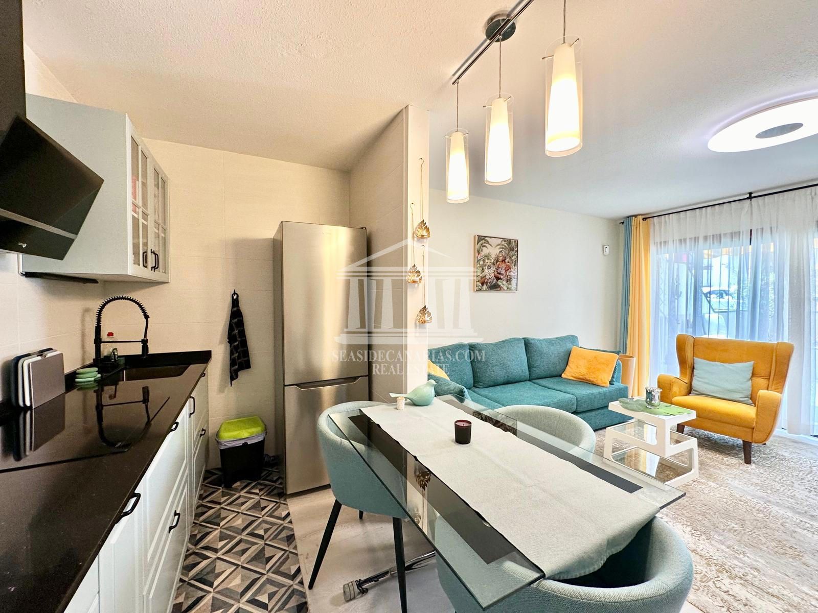 Apartamento reformado de un dormitorio en planta baja, situado en un atractivo complejo residencial en primera línea de mar en Costa del Silencio, municipio de Arona.
