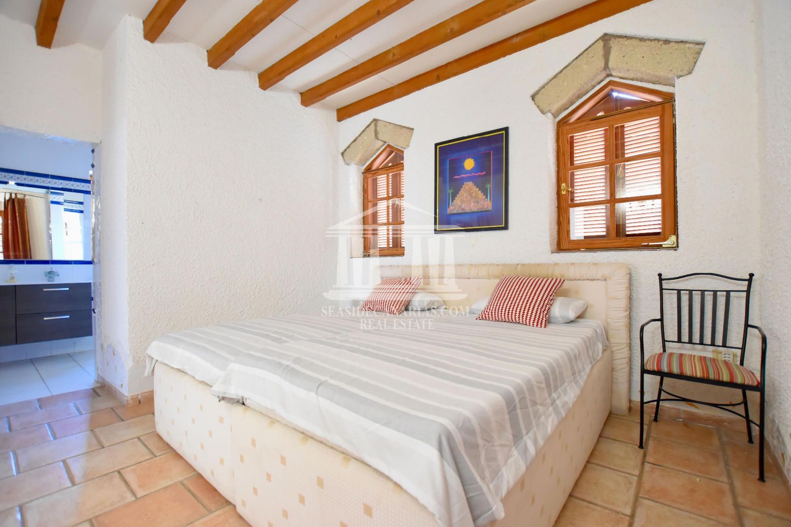 En la planta alta se encuentra la vivienda principal, con 2 dormitorios, 2 baños completos, cocina, luminoso salón-comedor y varias terrazas con vistas. Además, dispone de una habitación adicional ubicada en la torre, perfecta como despacho o zona de lectura. En el mismo nivel, la finca cuenta con una segunda vivienda independiente con 1 dormitorio, salón-cocina, baño y terrazas privadas, ideal para invitados.