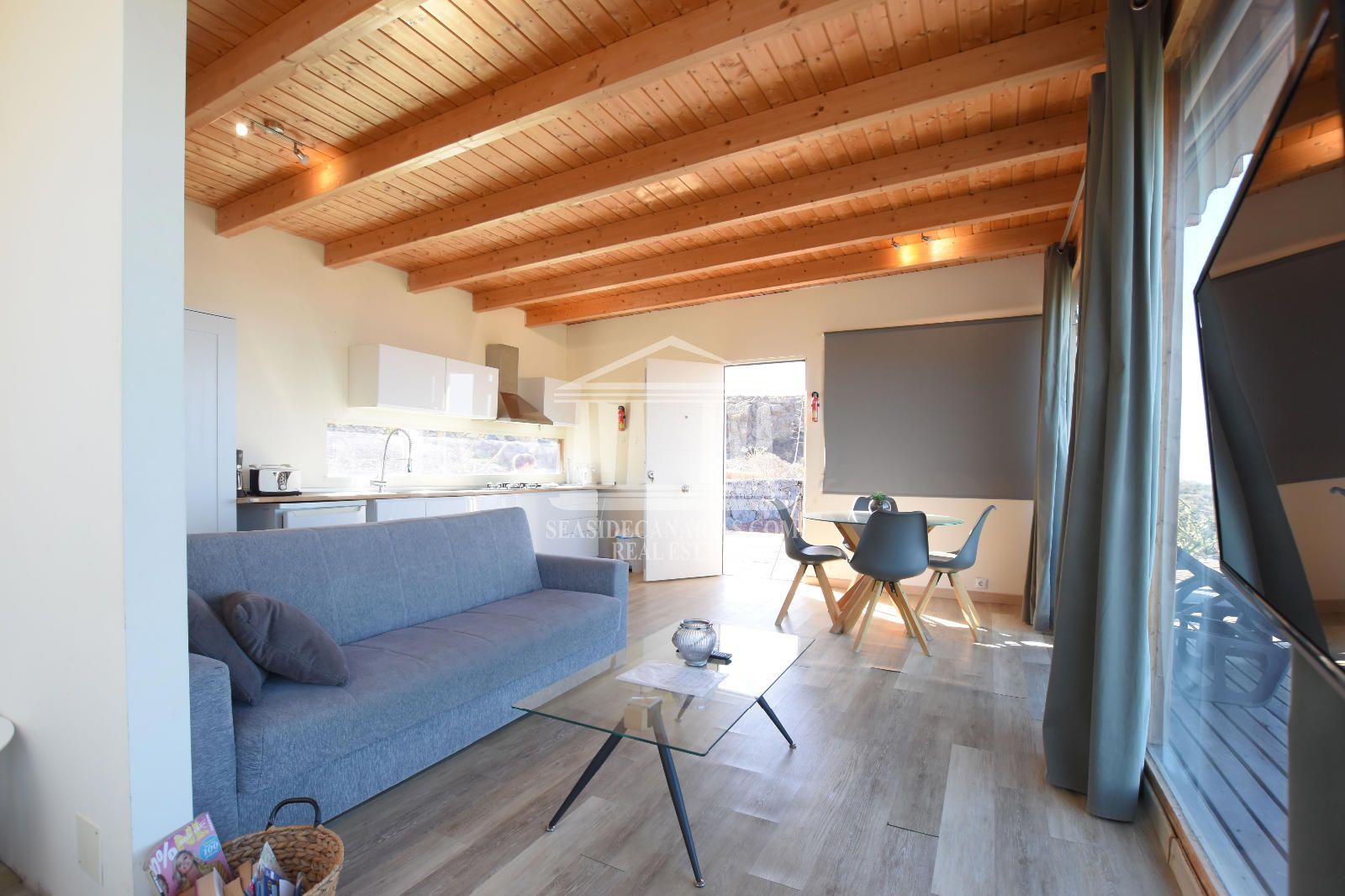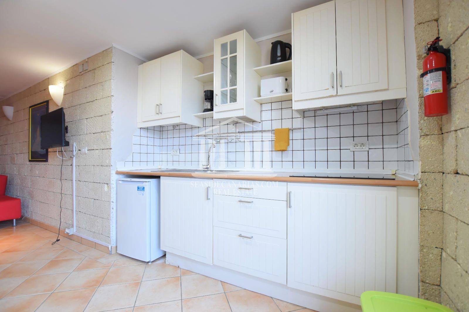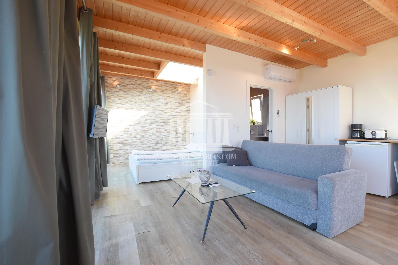 La planta baja alberga cuatro apartamentos tipo estudio, cada uno equipado con zona de dormitorio, zona de estar, cocina, baño y su propia terraza, lo que aporta gran versatilidad a la propiedad y abre posibilidades de uso turístico o de alquiler.