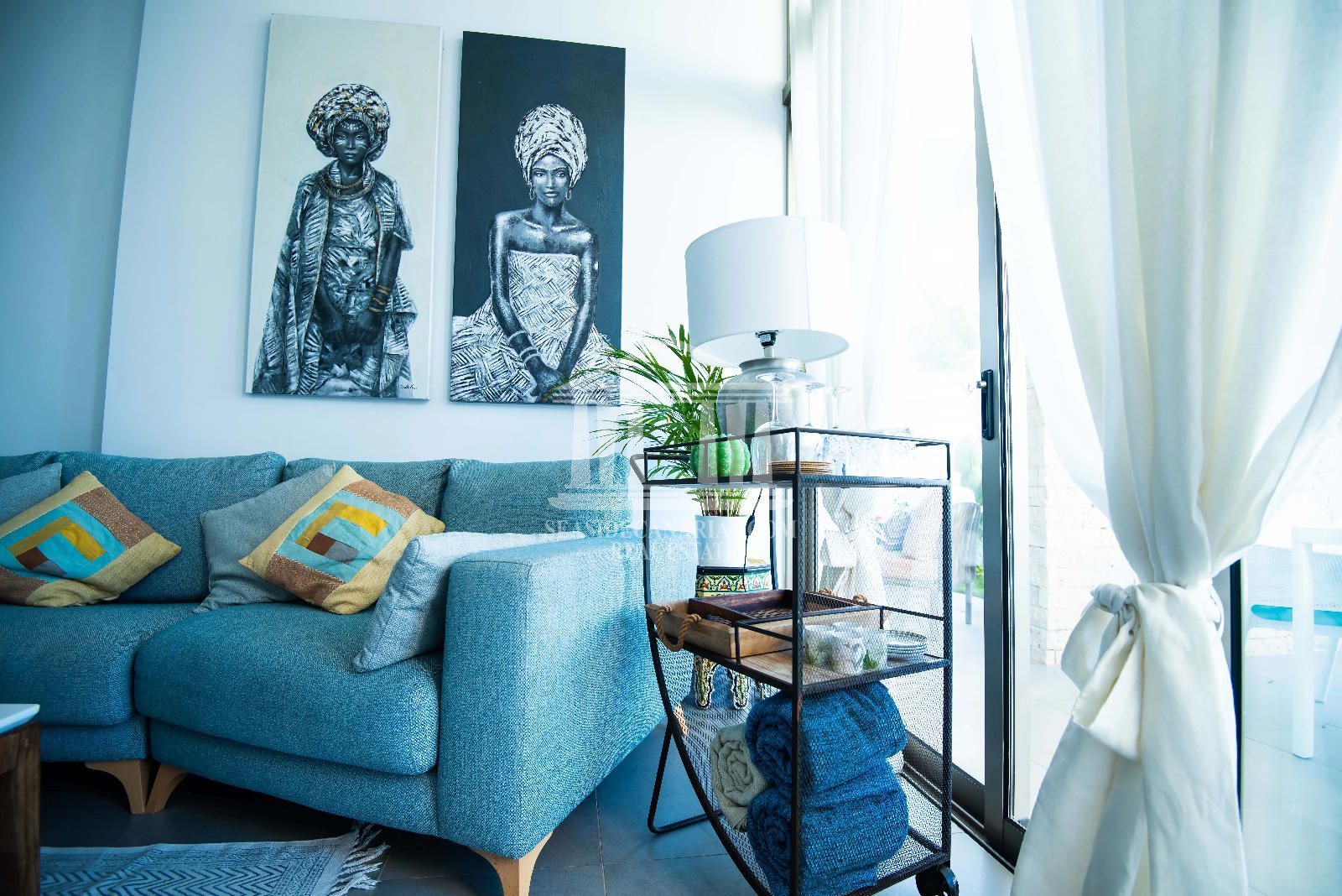 De villa beschikt over een prachtige volgroeide tuin en een verwarmd zwembad met spectaculair uitzicht op de golfbaan en de zee. Op de begane grond zijn ruime terrassen die direct aansluiten op de woon- en eetkamer, perfect om het hele jaar door te genieten van het zonnige klimaat. De lichte en gezellige woonkamer met aangrenzende eetruimte creëert een uitnodigende sfeer voor familie en vrienden. De aparte, volledig uitgeruste keuken heeft een handige bijkeuken.