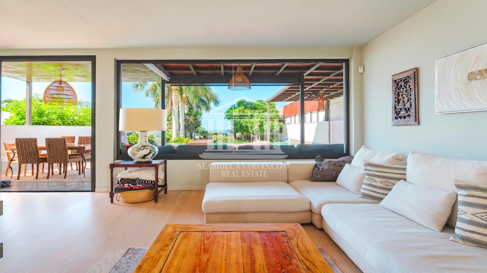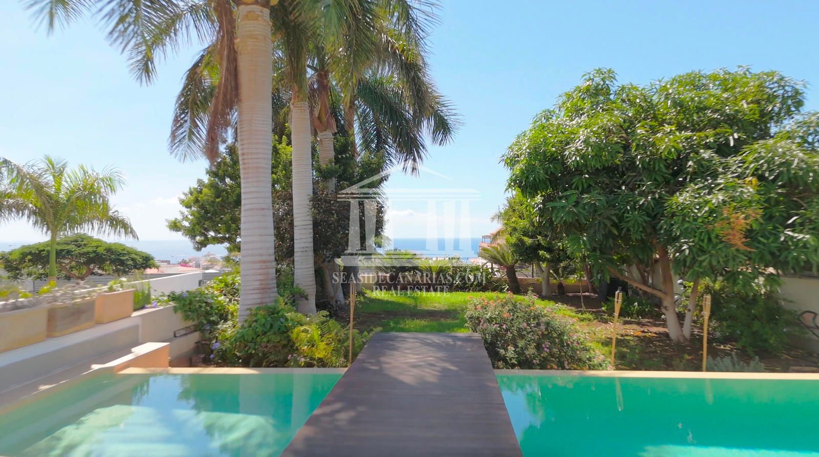 Имеется большой сад с видом на море, пальмы и фруктовые деревья, частный бассейн, просторные террасы и подземный гараж на несколько автомобилей.