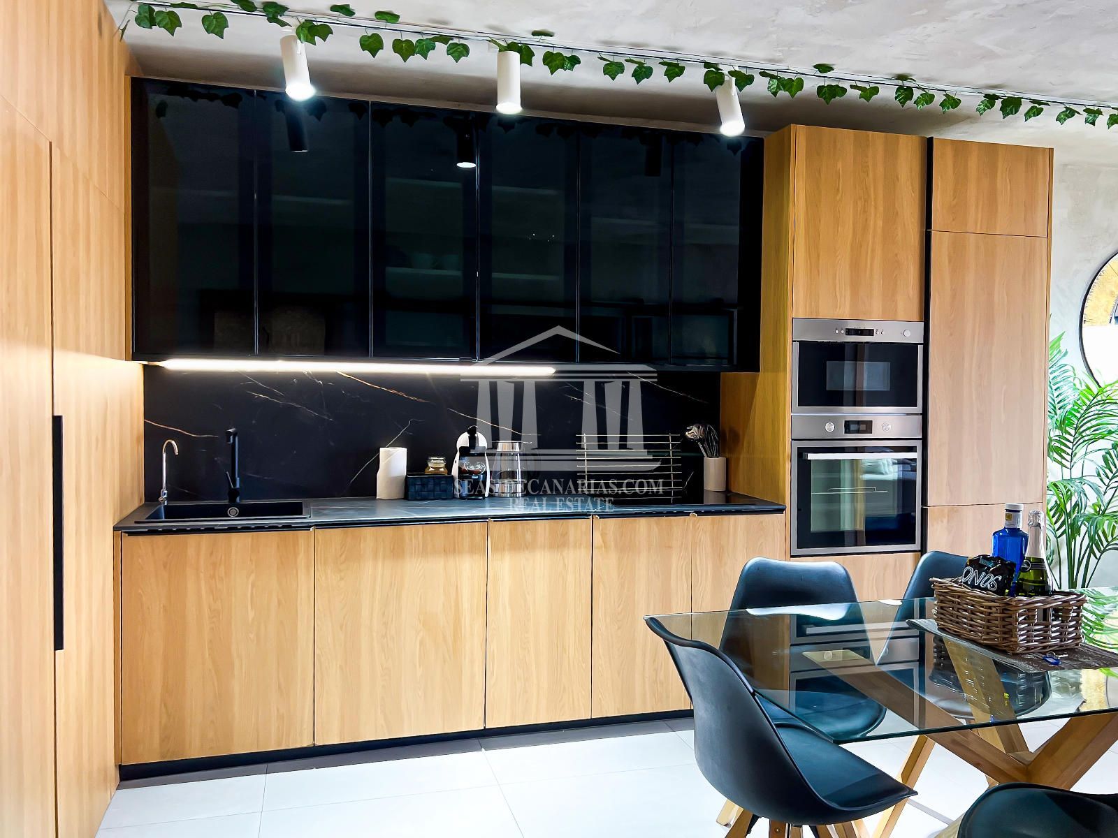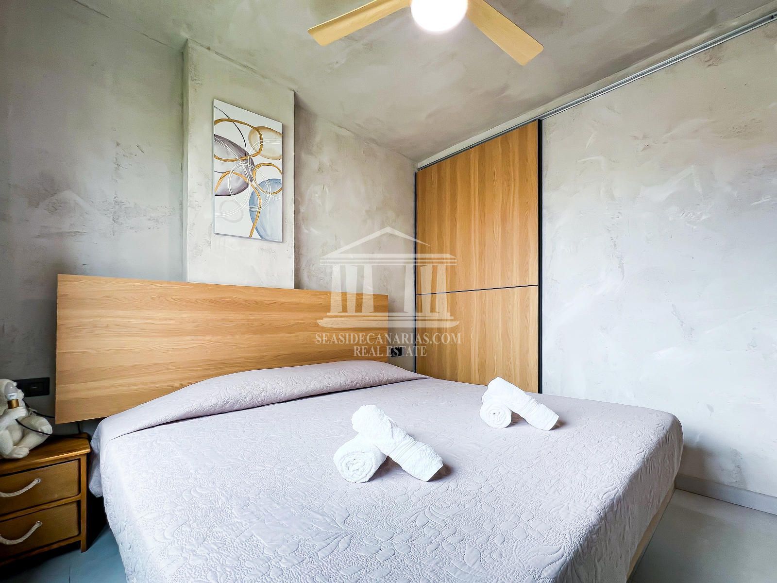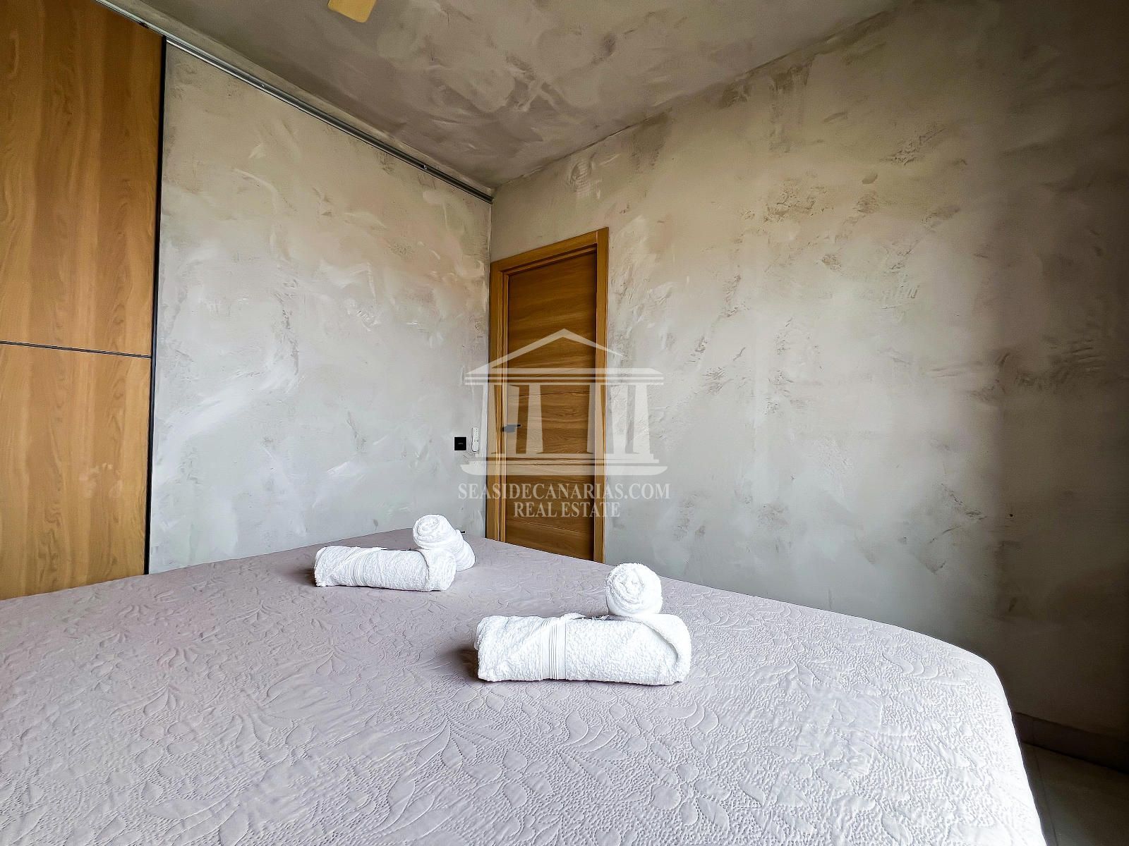 Квартира расположена на первом этаже и включает две просторные спальни, полностью оборудованную ванную комнату и уютную гостиную с открытой кухней, спроектированной так, чтобы максимально использовать естественное освещение. Из гостиной есть прямой выход на террасу — идеальное место для отдыха и наслаждения мягким климатом юга Тенерифе круглый год.